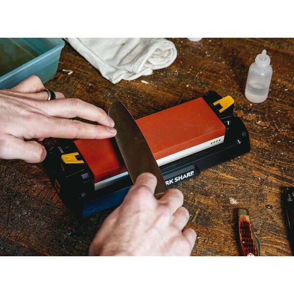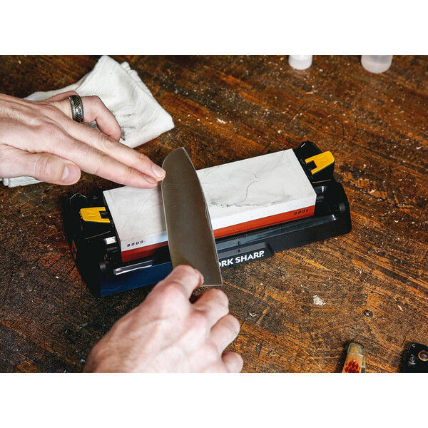 Точилният камък Work Sharp Benchtop е ъглово насочващ се, двойнозърнест камък за заточване на ножове и инструменти с фини ръбове. Висококачественият корундов камък с зърненост 1000 и 6000 създава невероятно остри ръбове. Основата за заточване осигурява стабилна платформа и подобрен контрол на водата за по-малко замърсяване и по-бързо почистване. Ъгловите водачи създават прецизност и постоянство, за да поддържат ръба, което прави заточването по-бързо и лесно. Водачите за заточване са взаимозаменяеми от 15° или 17° и са опционални за използване.