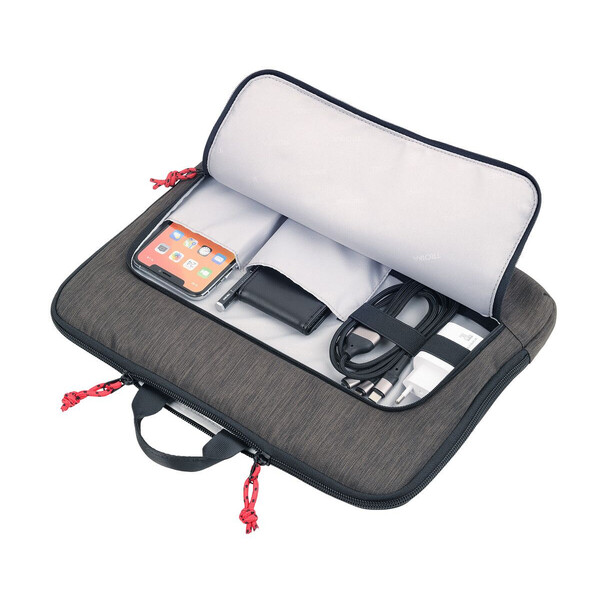 BUSINESS CARRY 2 отвежда мобилния ви офис от точка А до точка Б – безопасно и интелигентно. Идеален за бизнес пътувания, търговски панаири или ежедневна употреба. Лаптопи и таблети до 14" (напр. MacBook Pro) са сигурно прибрани в подплатеното основно отделение със защита на ръбовете. Документите се държат на място с еластична лента, а дръжката се сгъва за секунди, когато е необходимо. Зарядните кабели, мишката и други са спретнато организирани в добре структурирания преден джоб - включително специално отделение за AirTag за допълнително спокойствие. А най-хубавото? Каишката за количка държи и двете ви ръце свободни, когато сте в движение. Изчистени линии, функционален дизайн - създадена за професионалисти в движение. В елегантен антрацитно/черен цвят от серията TROIKA BUSINESS BAG.