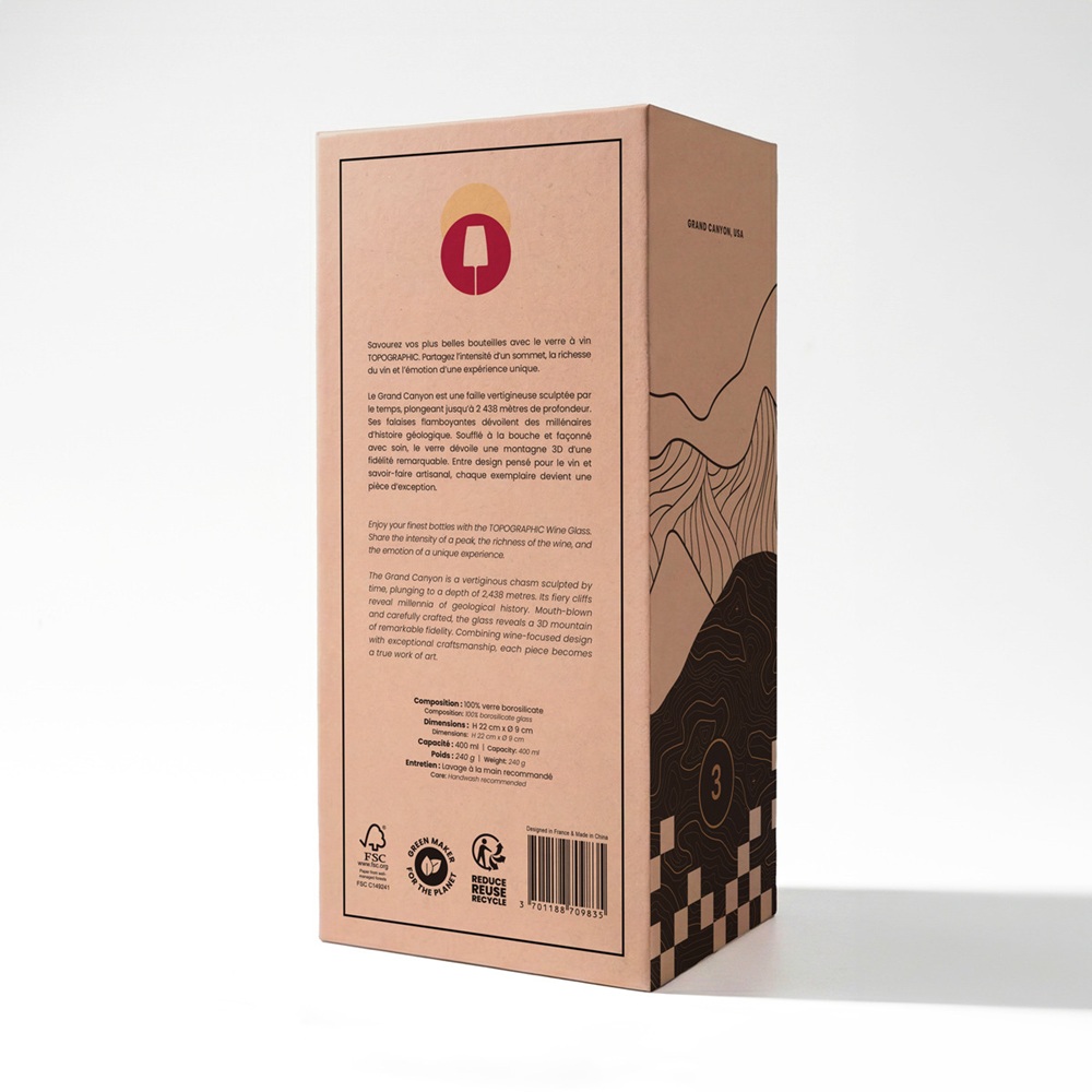 Насладете се на виното си в Гранд каньон. 100% боросиликат – Високо качество 400 мл – Голям капацитет Уникална форма – Удобен захват Издухано на ръка – Ръчна изработка Топографски релеф – Ултра дизайн Внимателно проектирана подаръчна кутия – Идеална за подарък Височина 22 см × Диаметър 9 см Открийте други върхове Гаранция за здравина като дъб