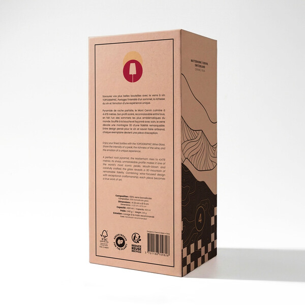 Насладете се на виното си в Матерхорн. 100% боросиликат – Високо качество 400 мл – Голям капацитет Уникална форма – Удобен захват Издухано на ръка – Ръчна изработка Топографски релеф – Ултра дизайн Внимателно проектирана подаръчна кутия – Идеална за подарък Височина 22 см × Диаметър 9 см Открийте други върхове Гаранция за здравина като дъб