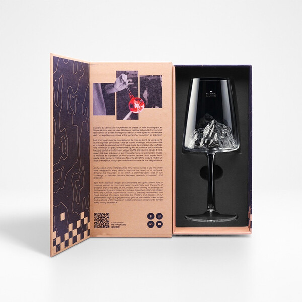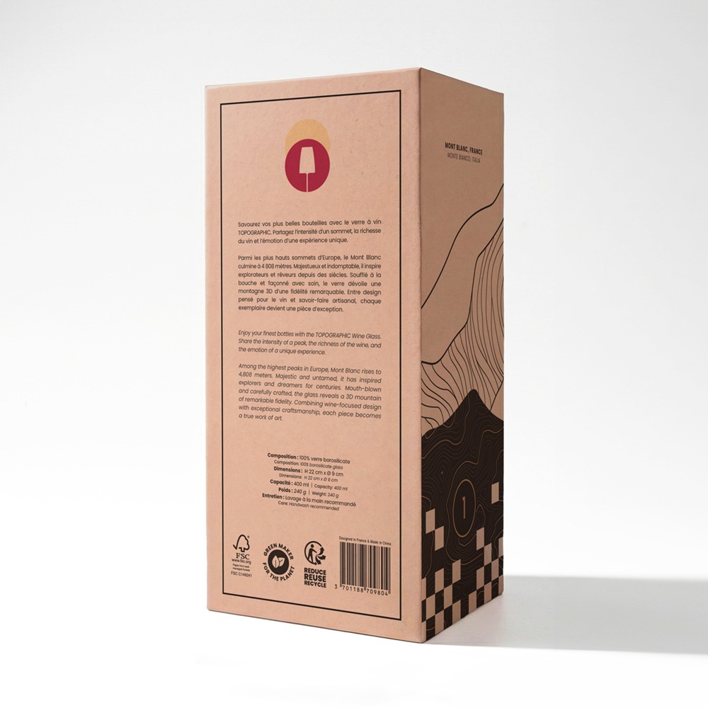 Насладете се на виното си в Монблан. 100% боросиликат – Високо качество 400 мл – Голям капацитет Уникална форма – Удобен захват Издухано на ръка – Ръчна изработка Топографски релеф – Ултра дизайн Внимателно проектирана подаръчна кутия – Идеална за подарък Височина 22 см × Диаметър 9 см Открийте други върхове Гаранция за здравина като дъб