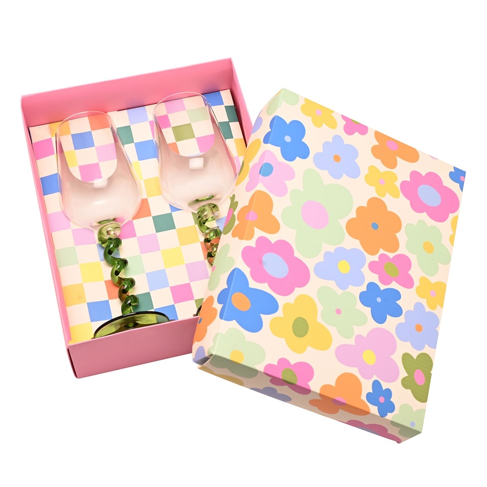 Закачливите въртящи се дръжки ги отличават, а чашите съчетават елегантност с чувство за забавление. Докато кутията, готова за подарък, с посланието „Наздраве за хубавите времена“ прави този комплект лесен избор за празненства или като забележителен подарък.
