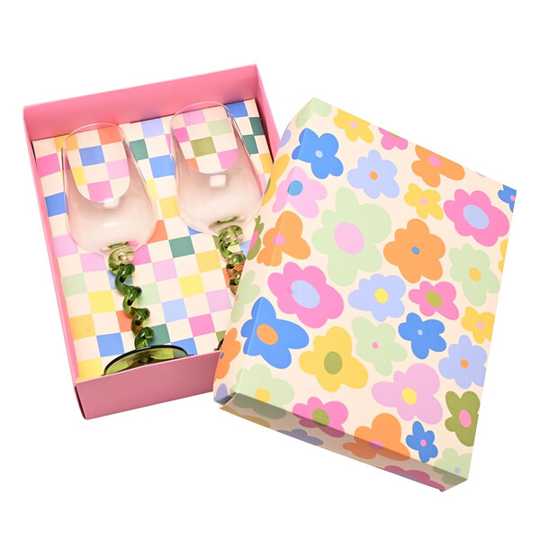 Чифтът чаши за вино „Raspberry Blossom“ с въртящи се дръжки в подаръчна кутия е ярък начин да отбележите специални поводи, от рождени дни и годишнини до непринудени вечери с приятели.