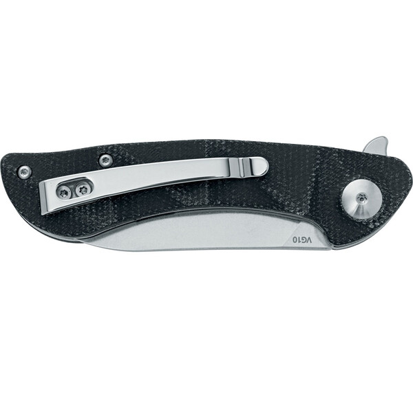 Стомана на острието: VG10 Твърдост: HRC 59-61 Финиш на острието: Стоун уош Дръжка: Черна Микарта Винтове: Полирана неръждаема стомана Клипс: Полирана AISI 420 Дебелина на острието: 3.0 мм Дължина на острието: 75 мм Обща дължина: 170 мм Внимание: Не е подходящо за деца - острието е много остро. Препоръчва се съхранение в блок за ножове. Неправилната употреба може да доведе до наранявания.