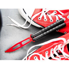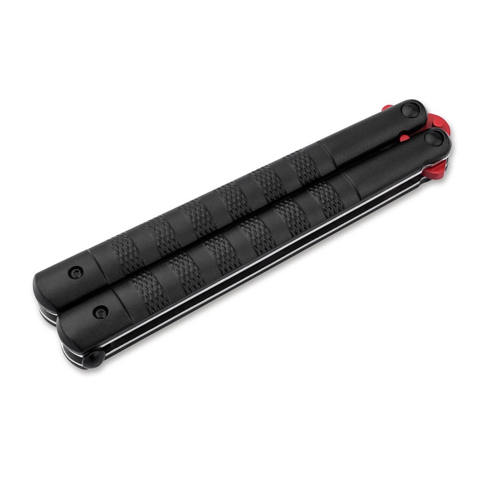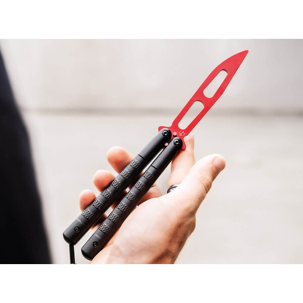 Във филмите боравенето с балисонг, известен още като нож тип „пеперуда“, често се осмива като „размахване“. В действителност обаче безопасното и умело боравене с балисонг изисква много практика и сръчност. За начинаещи и напреднали потребители, които искат да подобрят техниките си на обръщане, Böker Plus Balisong Relack Trainer предлага оптимално решение за тренировка. Този специален тренировъчен нож е с тъпо острие, изработено от здрава стомана 420 със заоблен връх и гладки ръбове, което минимизира риска от нараняване по време на тренировка. Острието с червено покритие има големи отвори, ясно отличаващи го от острите ножове и по този начин осигуряващи максимална безопасност.
