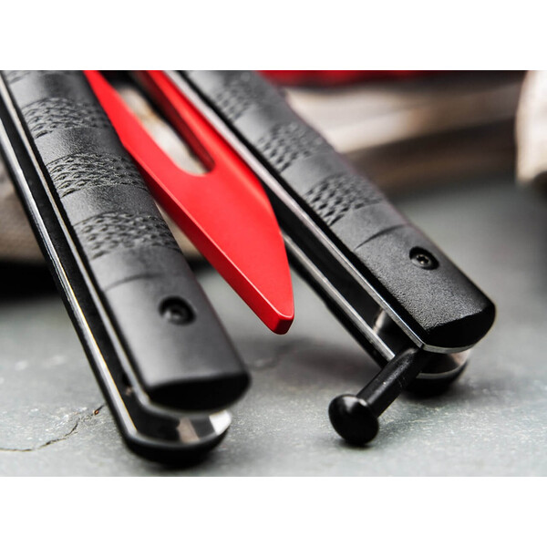 В същото време механизмът и разпределението на теглото на Relack Trainer съвпадат точно с тези на истински нож тип „пеперуда“, гарантирайки реалистично тренировъчно изживяване. Текстурираните дръжки, изработени от висококачествен, високоякостен алуминий, осигуряват сигурен захват, дори при бързи движения. Практичен найлонов калъф допълва комплекта, осигуряващ безопасно съхранение и транспортиране на ножа тип „пеперуда“. Тренажорът за балисонг Böker Plus е перфектният избор за всеки, който иска да научи техники за балисонг безопасно и непрекъснато да подобрява уменията си – независимо дали е начинаещ или с опит.