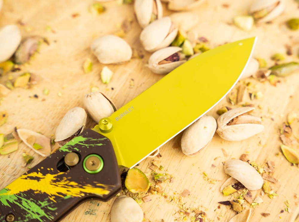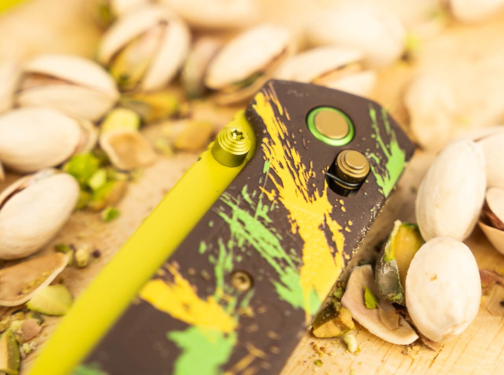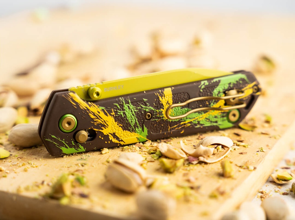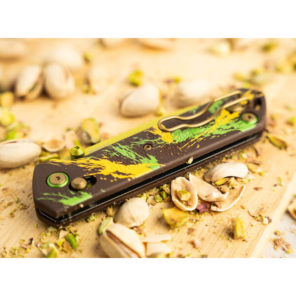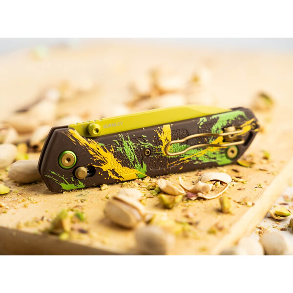 Сладък и ексклузивен, но без никакви калории! Лукас Бърнли е усъвършенствал рецептата за емблематичния Дубайски шоколад, за да завладее вкусовите рецептори на ценители на ножове с тази фино настроена специална версия на Boker Plus Kihon. Вместо млечен шоколад, крем от шамфъстък и кадаиф, американският дизайнер е избрал острие D2 със сачмени лагери, лека и здрава дръжка, изработена от GFN, както и отваряне с палец и кросбар механизъм за заключване на сгъваемото ножче. Разтапящият се в устата дизайн на Kihon, който използва съставките на Дубайския шоколад с характерната цветова концепция от жълто, зелено и кафяво върху острието и дръжката, гарантира пълно удоволствие с богат хрупкав ефект. Основната идея на джобното ножче датира от японския термин Kihon. Той първоначално обхваща фундамента и основните техники на японските бойни изкуства, които Бърнли реализира практически в солидния ежедневен нож. Характеристиките и семплия дизайн са доказателство за високата практичност на ножа и му дават идеална основа за ежедневни задачи по рязане. Доставя се с отвор за връзка и клипс за носене.