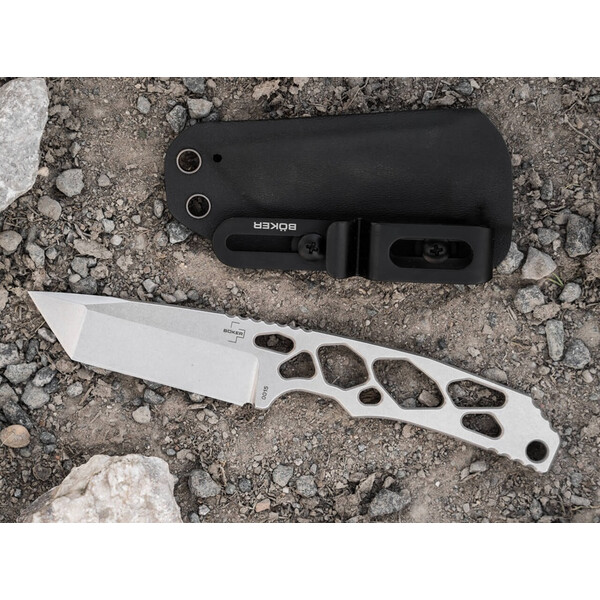 Солидното танто острие, изработено от D2 стомана и със стоунуош финиш, без усилие балансира прецизност и издръжливост в широк спектър от приложения, от ежедневно носене (EDC) до приключения на открито. Намаляващи теглото, асиметрични изрези в скелетизираната дръжка хармонизират усещането и външния вид, докато характерната дебелина на острието и противоплъзгащите се подгъви в ключови точки осигуряват изключително сцепление и безопасност, като незабавно повишават разпознаваемостта на марката Midgards. Истински акцент – Böker Plus Superlight Tanto!