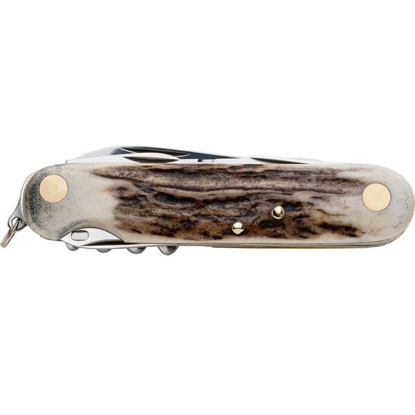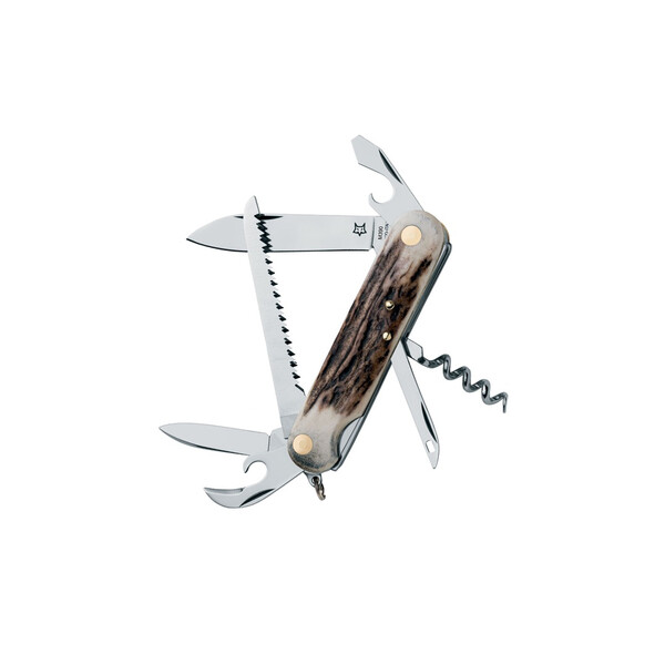 Fox Venatores е мултифункционален инструмент, който с дръжката си от еленски рог вдъхва винтидж дух, напомняйки за елегантността на занаятчийските ножове от миналото. Подсилен с кожен калъф, този инструмент се предлага в различни версии с шест, седем и осем компонента, адаптивни към различни нужди. С 10-сантиметрово острие, малко острие, плоска отвертка, отварачка за бутилки, шило, отварачка за консерви, трион и тирбушон, този мултифункционален инструмент е надежден спътник за ежедневни дейности и приключения на открито.