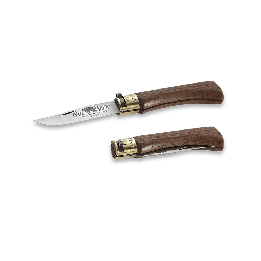 Old Bear Classical Walnut M Подаръчна кутия Old Bear Classical е сгъваем нож в класически стил, който съчетава майсторска изработка с издръжливост. Висококачественото острие от неръждаема стомана AISI 420 е шлифовано с камък за остро като бръснач острие. Ергономичната дръжка е изработена от обработен с масло орех и ще развие естествена патина през целия си живот. Classical разполага и с Ring-Lock, месингово заключващо устройство, което държи ножа здраво на място както затворено, така и отворено. Предлага се с калъф и екологична подаръчна кутия. Характеристики: Марка: Old Bear Дизайнер: Old Bear Страна на произход: Италия Вид стомана: AISI 420 неръждаема стомана Твърдост: 56 HRC Материал на дръжката: Орех Дължина на острието: 8 см Дължина на дръжката: 11 см Обща дължина: 19 см Тегло: 199 грама Калъф/калъф: Кожа
