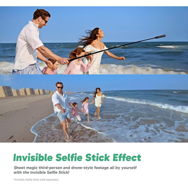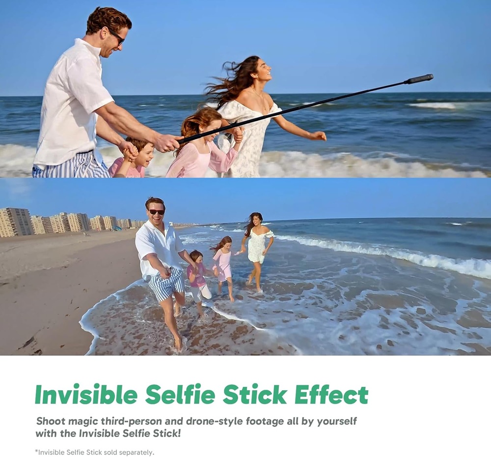 Ефект на невидим селфи стик: Да! Можете сами да създавате невероятни снимки от трето лице! Селфи стикът автоматично изчезва от кадрите ви като по магия. Нямате фотограф? Няма проблем!