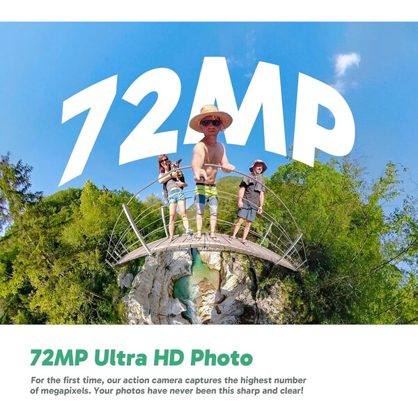 72MP 360° снимки: За първи път нашата екшън камера улавя най-голям брой мегапиксели. Вашите снимки никога не са били толкова резки и ясни!