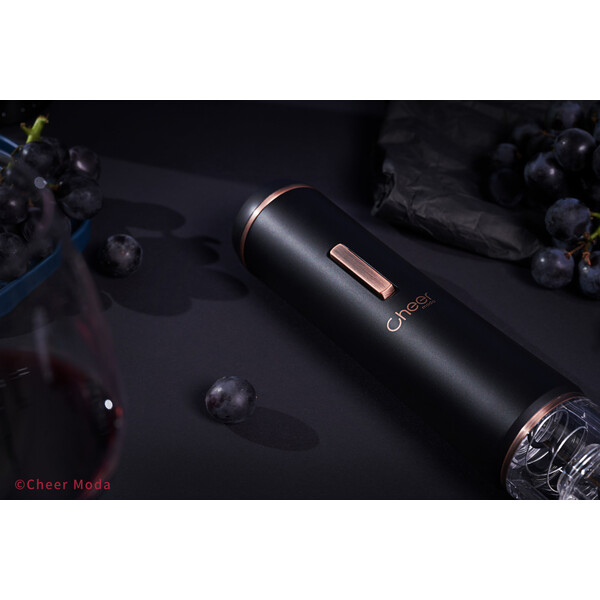 Златен носител на наградите Good Design Awards за 2018 г., този елегантен електрически тирбушон отваря бутилка вино за по-малко от 6 секунди. Разполага с перфектно интегриран нож за фолио, закрепен с магнит към горната част. Работи с 4 AA батерии. Материали: ABS, PC, неръждаема стомана Размери: ⌀53,5 мм x 261 мм Цветове: Черен и бронзов Включен нож за фолио