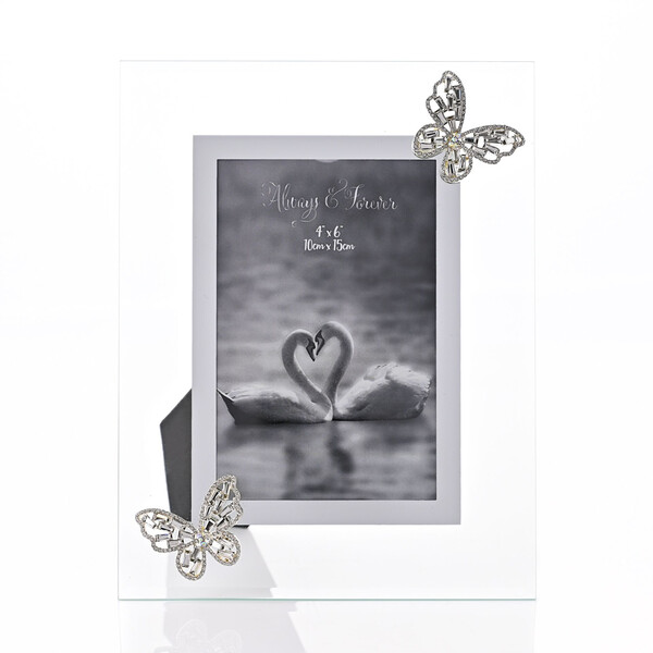 Тази рамка би била прекрасно място за показване на вашите снимки с любимия ви човек. Украсите с пеперуди са възхитително и блестящо допълнение към тази уникална рамка и ще ви помогнат да отпразнувате любимия си човек тази пролет. Детайли: 3D стъклена рамка с пеперуда прекрасно място за показване на вашите годежни снимки 10 x 15 см Основен материал: Стъкло Вторичен материал: Метал Размер на блендата: 4” x 6” (10 x 15 см) Брой бленди: Единична Ориентация: Портретна Форма на блендата: Правоъгълна Тип опаковка: Брандирана затворена кутия Марка: Celebrations® Размери на опаковката: В 230, Ш 180, Д 25 мм Размери на продукта: В 230, Ш 180, Д 10 мм