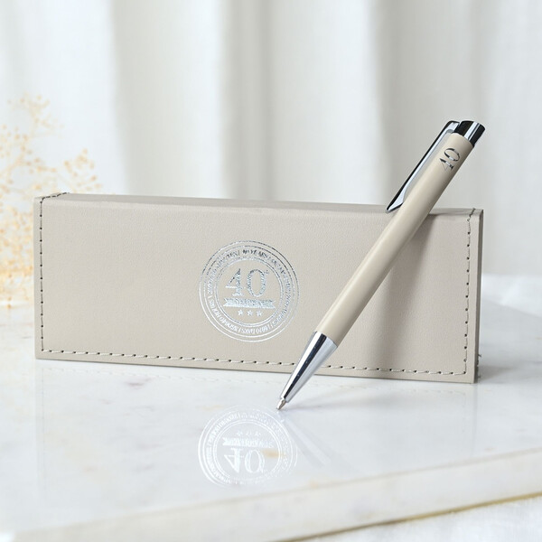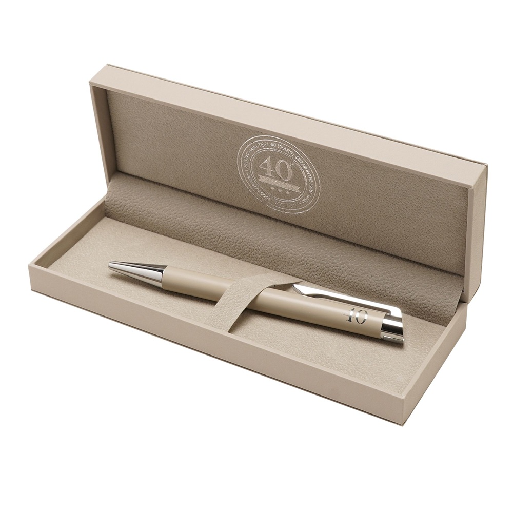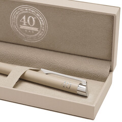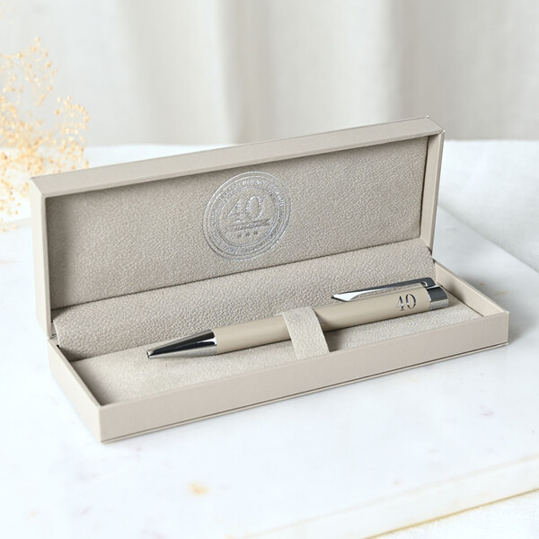 Тази бежова химикалка е представена в подаръчен калъф, с релефен кръгъл печат с числото 40 за ясно съобщение за възрастта и силна привлекателност. Неутралната цветова палитра и изчистеният завършек я правят подходяща както за мъже, така и за жени, идеална за подаръци за рожден ден и колекции, свързани с възрастта.
