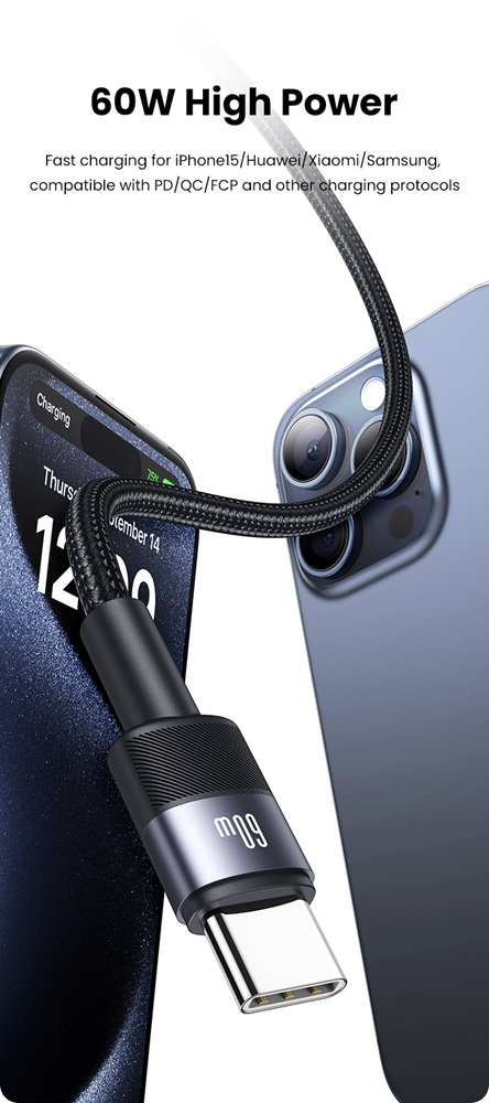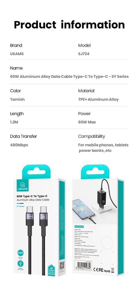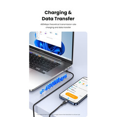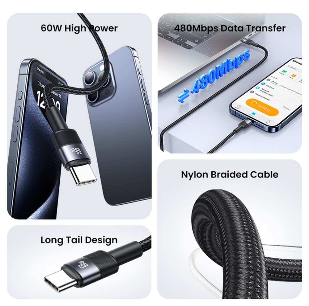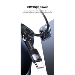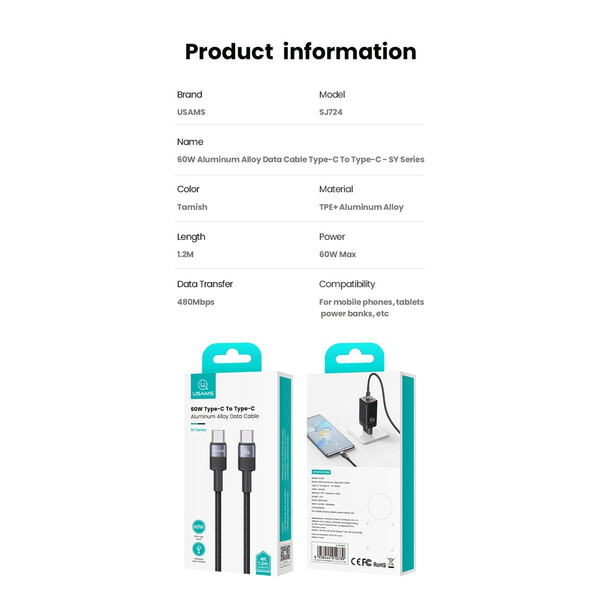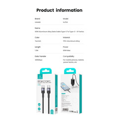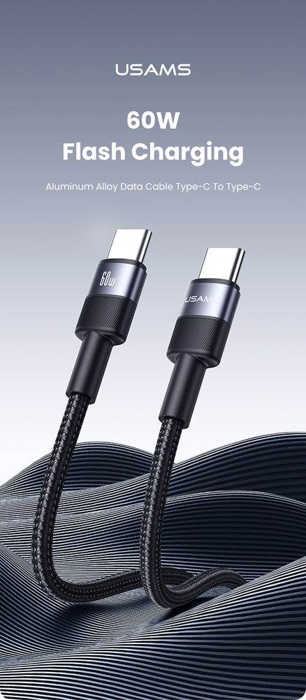 USB-C към USB-C кабелът от Usams е универсално и мощно решение за всеки, който се нуждае от надеждна връзка за своите устройства. С дължина от 1,2 метра, той осигурява достатъчно място за употреба, като същевременно поддържа максимална изходна мощност от 60 вата. Този кабел е идеален за свързване на смартфони, таблети, външни батерии и други USB-C съвместими устройства. Комбинацията от TPE, алуминиева сплав и оплетен материал осигурява висока издръжливост и гъвкавост, а иновативният дизайн е едновременно функционален и естетически приятен. Скоростта на пренос на данни до 480 Mbps позволява бърз и ефикасен трансфер на файлове, което го прави практичен избор за ежедневна употреба. Кабелът съчетава функции за зареждане и пренос на данни в едно, което го прави важен аксесоар за съвременните потребители.