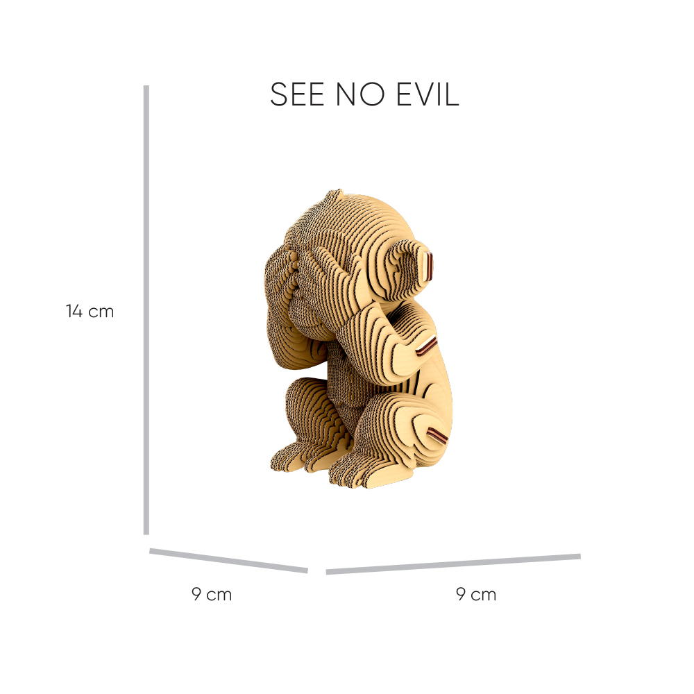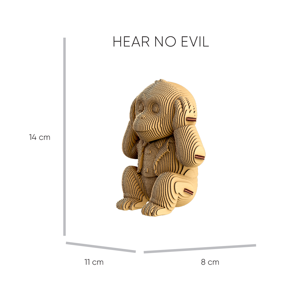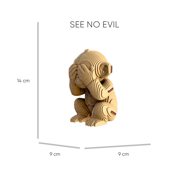 ТРИО МАЙМУНКИ — три сладки маймунки, въплъщаващи известния принцип „не виждай зло, не чувай зло, не говори зло“. Тази интерпретация на древната източна философия във формат 3D пъзел добавя символично докосване и ще се превърне в уникален детайл във вашето пространство. Добавете малко цвят и подчертайте личността на всяка маймунка! Брой детайли: 280 Ниво на трудност: начално Тегло: 850 гр Размери на сглобения модел: 14x9x9 см не говори 14x9x9 см не вижда 14x11x8 см не чува