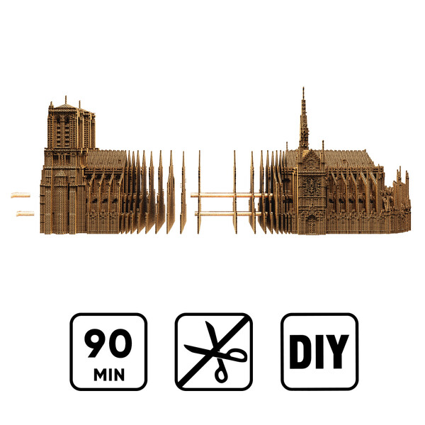 Парижката катедрала Нотр Дам (NOTRE-DAME DE PARIS) — е една от най-старите катедрали в света, строежът ѝ е отнел близо 200 години! Вътре тя съхранява реликви, произведения на изкуството и дори венецът от тръни, носен от Исус Христос! Какво ще кажете за едно пътуване до сърцето на Париж още сега? Сглобете свой собствен 3D пъзел на катедралата и добавете парижки чар към пространството си. Cartonic — превърнете картона в истинско ИЗКУСТВО! Брой детайли: 165 Ниво на трудност: средно Тегло: 941 гр Размери на сглобения модел: 16х10х26 см