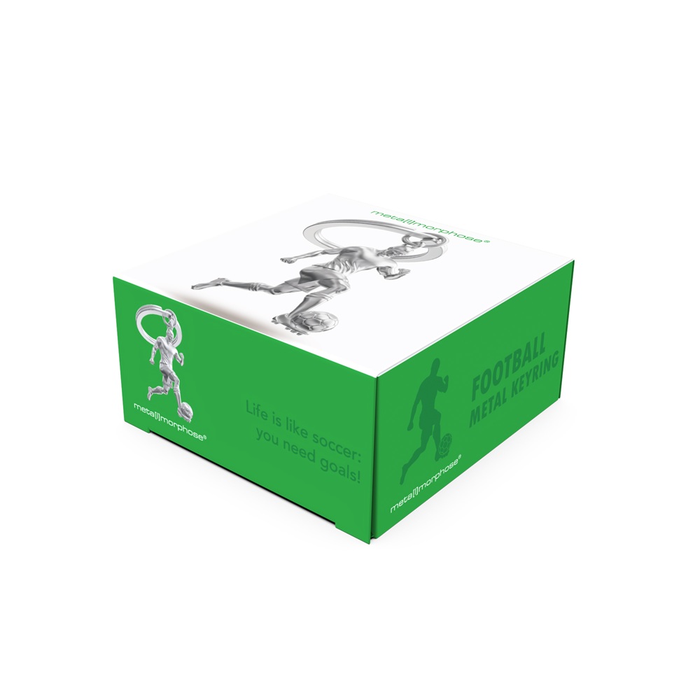 Размери: 8,1 x 4 x 1,4 см Материал: цинкова сплав, матово хромирано покритие Ключодържател със специално послание на опаковката (на английски език): Life is like soccer: you need goals! (Животът е като футбола: трябват ти цели!)