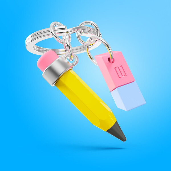 Материал: Ключодържател от цинкова сплав Розова и синя силиконова гумичка, лъскав и матов хром, матов върх с форма на топка, жълто покритие като молив Тегло на продукта: 22 грама Опаковка: Еко опаковка, соево мастило, без пластмаса Цитат на опаковката: Нека напишем най-великите истории заедно, с един щрих на молива!