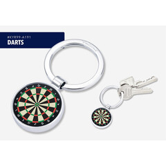 Изглежда брилянтно! Персонализираният дизайн превръща този ключодържател в личен фаворит: отличителен, многофункционален и винаги с вас. Идея, която е истинска цел! За всеки, който обича да удря право в целта: дизайнът с дартс прави този ключодържател истинска цел за феновете на прецизните спортове. Мотив на ключодържателя: ДАРТС, кръгъл, лят метал, лъскав, многоцветен / сребрист Размери: 67 x 35 x 7 мм Тегло: 32гр