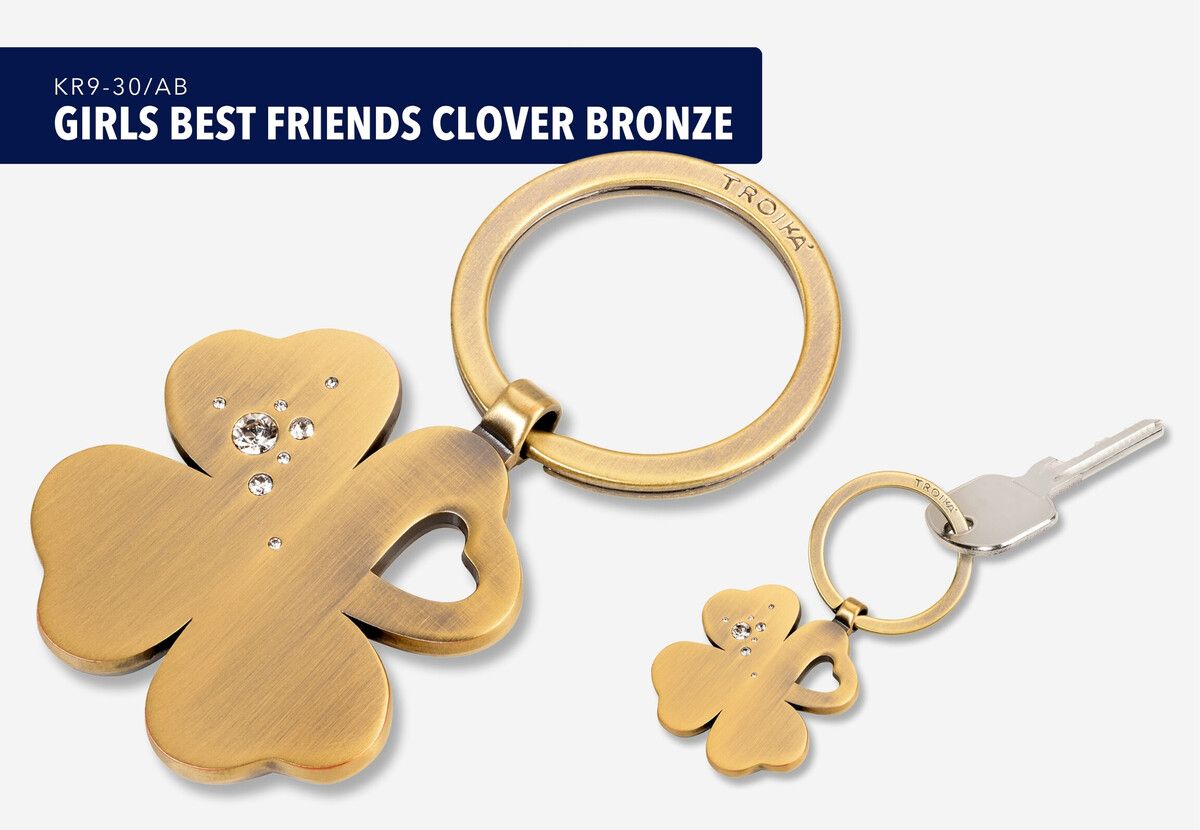 Тази четирилистна детелина е истинска рядкост в природата – и най-добрият приятел на всяко момиче. Изработена със SWAROVSKI® ELEMENTS, ключодържателят CLOVER блести с елегантни кристали, вградени в матов метален лист с античен златист вид. За всяко сбъднато желание – колкото повече вярвате в него, толкова повече то се получава. Никога не можете да имате твърде много късмет. За най-дългата щастлива поредица в живота си. Ключодържател, четирилистна детелина, изработена със SWAROVSKI® ELEMENTS, метална отливка, матово злато Размери: 75 x 40 x 4 mm Тегло: 39 гр