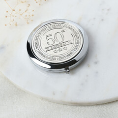 Компактното огледало Milestones - 50 е практичен подарък за спомен, предназначен да отбележи ключов юбилеен рожден ден с ясна привлекателност, съобразена с възрастта.