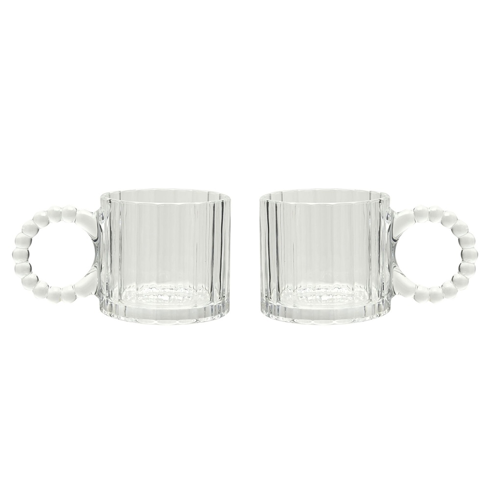 Представяме ви HESTIA®; уникална, съвременна и стилна гама от аксесоари за дома, фокусирани върху достъпна елегантност. Потопете се в семплите удоволствия с комплекта от 2 прозрачни чаши Hestia с дизайн „Bobble“. Тези прозрачни стъклени чаши с дръжки от топчета предлагат модерен поглед върху класиката, идеални за уютен следобеден чай или кафе. Марка: Hestia® Основен материал: Стъкло Тип опаковка: Затворена кутия Тегло на продукта: 0.3190 кг Размери на продукта: В 78, Ш 140, Д 85 мм Размери на опаковката: В 88, Ш 120, Д 238 мм
