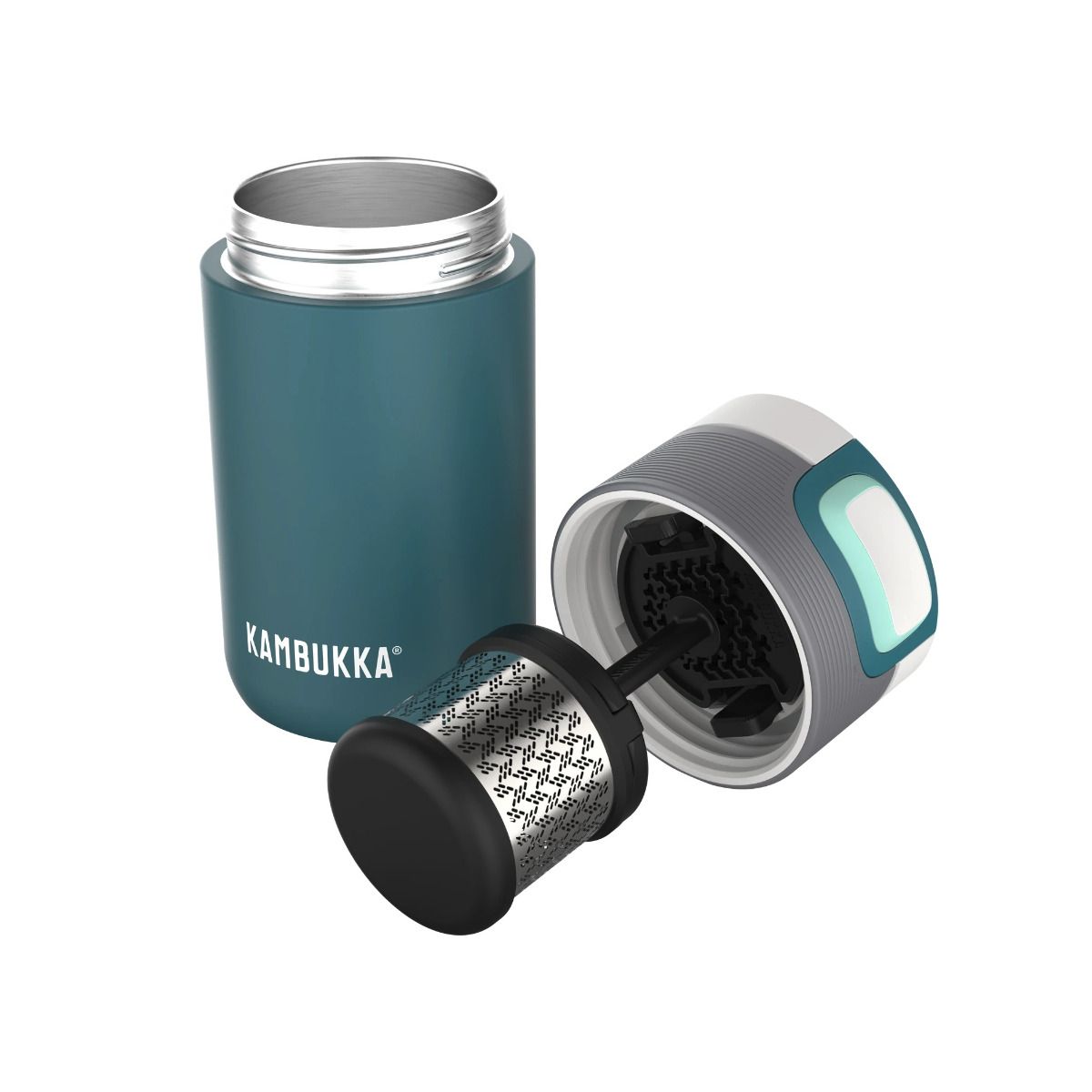 Този комплект за чай Kambukka е идеалният партньор за вашата термочаш Etna, когато сте в движение. Няма повече чаени листа, плуващи в напитката ви, както и прекомерен, горчив чай. Подходяща е само за термочаши Etna 300 и 500мл. Комплекътът се състои от Snapclean механизъм със сито за термочаша Etna, инфузер за чай и метална кутия за съхранение. Може да се мие в съдомиялна машина. Височина: 16 см Диаметър: 5.3 см