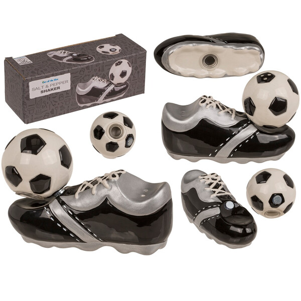 Керамичен комплект за сол/пипер - футболна топка и обувка, с магнит, Размери: 11.5 x 7.5 x 5 см Тегло: 0.162 кг