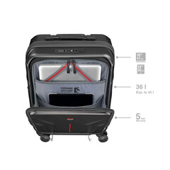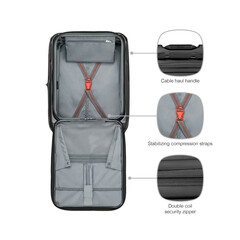 Amplix Carry-On е незаменим спътник при пътуване, разполагащ с подвижен панел, предназначен за лесно съхранение на лаптопи до 16" и таблети до 12". Включва органайзер за най-необходими вещи, за да поддържа вещите ви спретнато подредени, а одобрената от Travel Sentry® комбинирана ключалка осигурява допълнителна сигурност за вашите вещи. USB портът гарантира, че ще останете свързани в движение. С двоен защитен цип и разширение, предлагащо допълнително място за опаковане, Amplix Carry-On съчетава функционалност и удобство за нуждите на съвременния пътешественик.