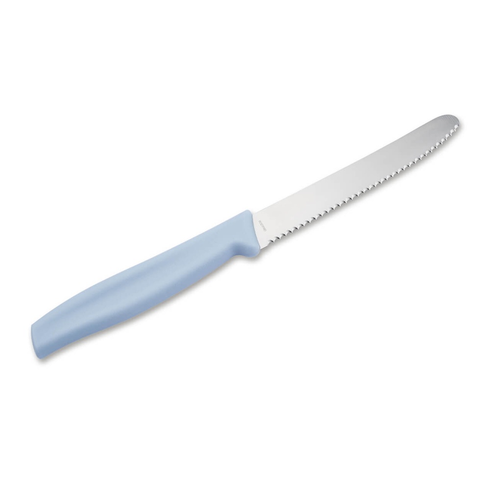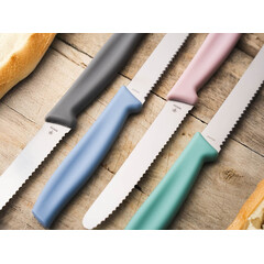Универсалният нож за сандвичи Boker е оборудван с острие от висококачествена неръждаема стомана с остър назъбен ръб. Той е идеален за рязане на плодове и зеленчуци, както и като нож за домати или хляб. Черната синтетична дръжка е с ергономична форма и винаги лежи сигурно в ръката благодарение на грапавата повърхност.