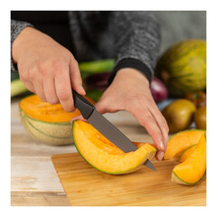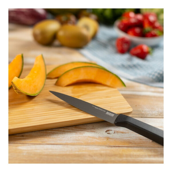 Универсалният нож ICED с назъбено острие впечатлява с удобния си размер и дълго назъбено острие. Той ви позволява без усилие да режете гладкокожи плодове и зеленчуци, като домати. Малки хлебчета също могат лесно да се режат с този нож.