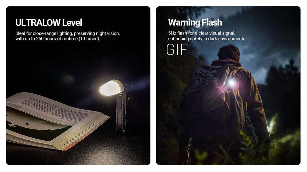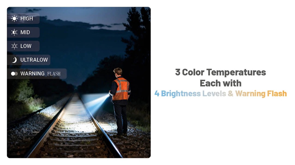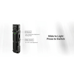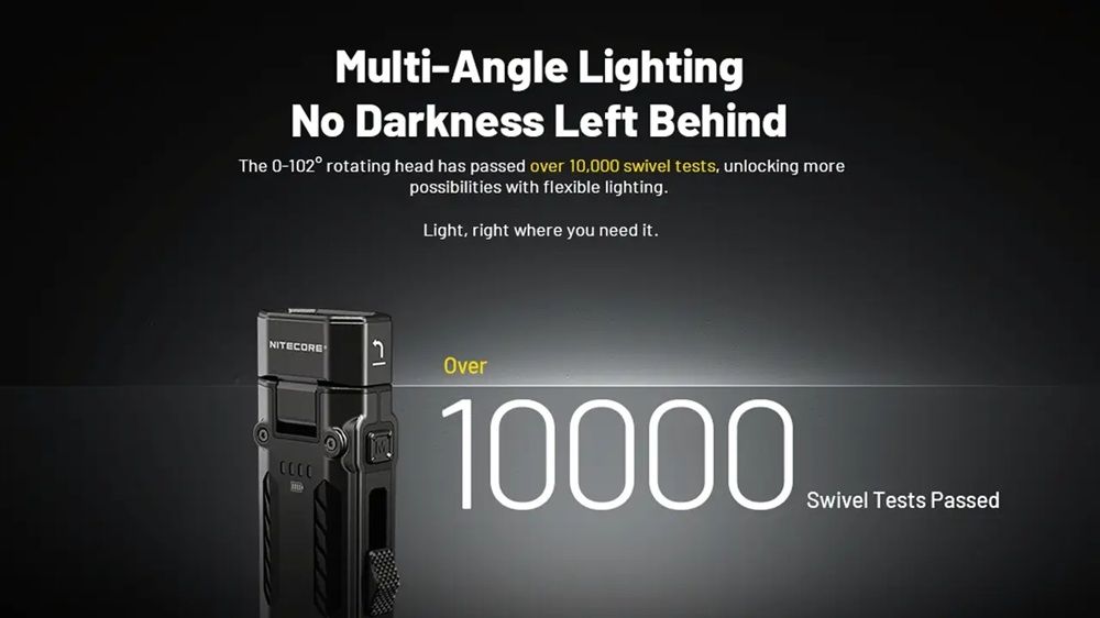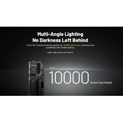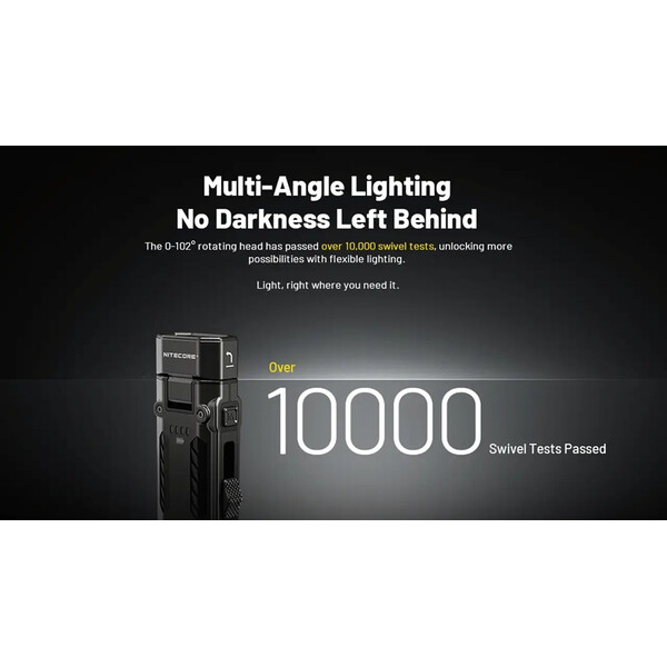 Регулируемата въртяща се глава на 102° ви осигурява прецизен контрол на посоката, което улеснява осветяването на тесни пространства, лагери, ремонти или тъмни пътеки. Магнитната опашка и двупосочната щипка от неръждаема стомана разширяват възможностите ви за употреба със свободни ръце, позволявайки бързо и стабилно поставяне в широк спектър от сценарии. Работата е проста и интуитивна, с плъзгащ се превключвател за включване/изключване и регулиране на яркостта и M превключвател за контрол на режима.