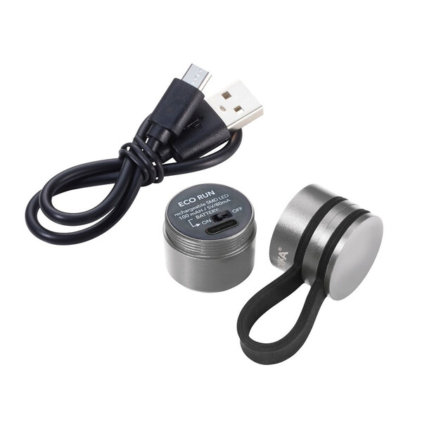Фенерче със силен магнит за закрепване, бяла LED светлина, 3 светлинни функции: 2 интензитета на светлината, мигащи светлини, зарежда се чрез USB (3,7 волта - 0,5 вата), литиево-полимерна батерия 100 mAh, защита от презареждане/дълбоко разреждане, включен кабел за зареждане, алуминий/силикон, матово, сиво Размери: 36 x 26 x 26 мм Тегло: 32 гр