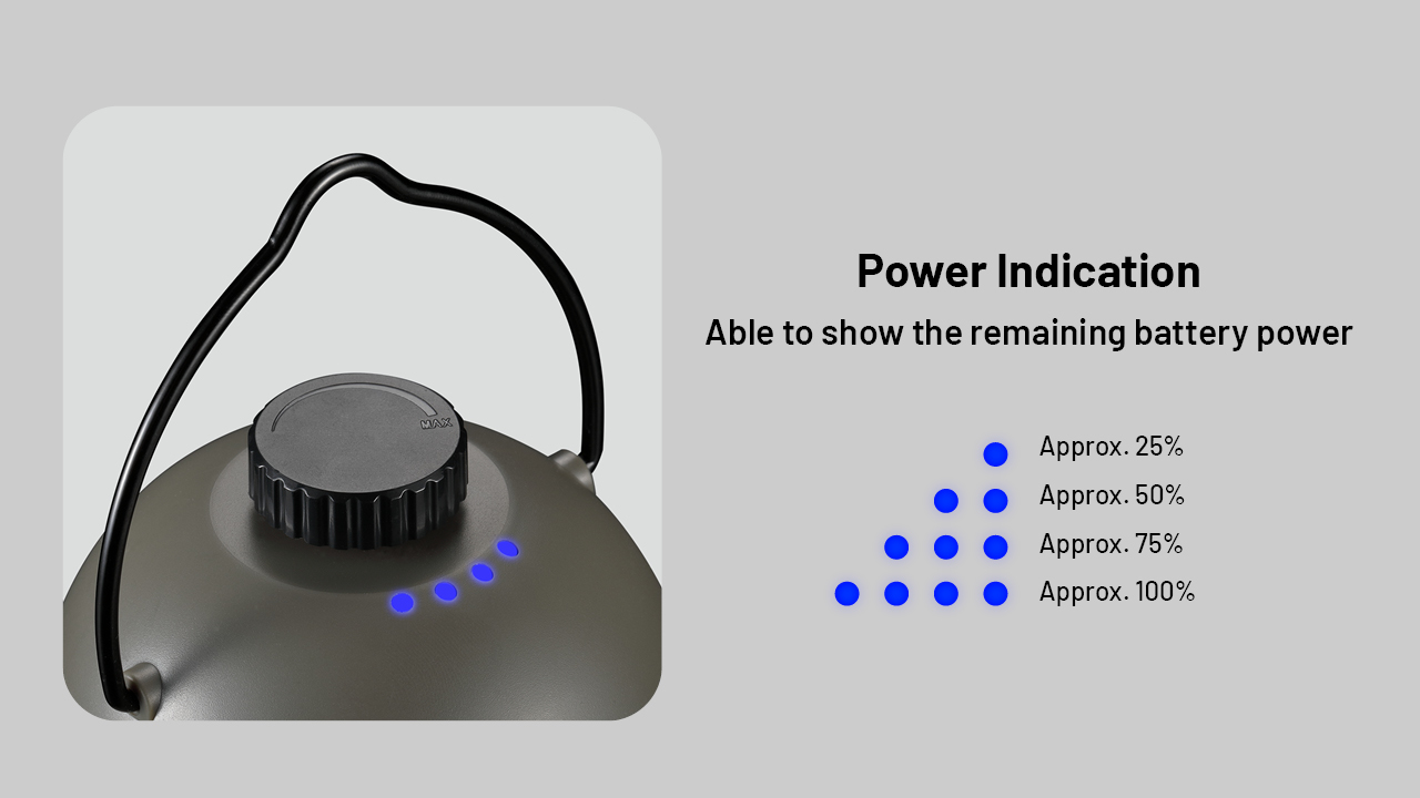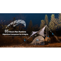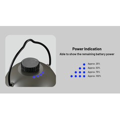 Превключвателят може да се използва за включване/изключване на светлината и регулиране на яркостта безстепенно. Вградената литиево-йонна батерия с капацитет 4000 mAh осигурява максимално време на работа от 65 часа, което го прави спътник през нощта за 8 нощи. Предлага се с USB-C вход и USB-A изход и може да се използва като захранване.