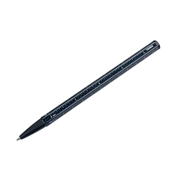 Многофункционална химикалка с черен пълнител D1, линийка сантиметър/инч, скала 1:20/1:50, лесна смяна на пълнителя, алуминий/метал, лъскава, черна Размери: 150 x 10 x 10 мм Тегло: 20 гр