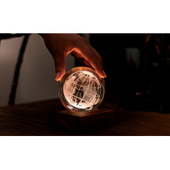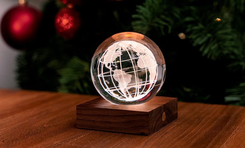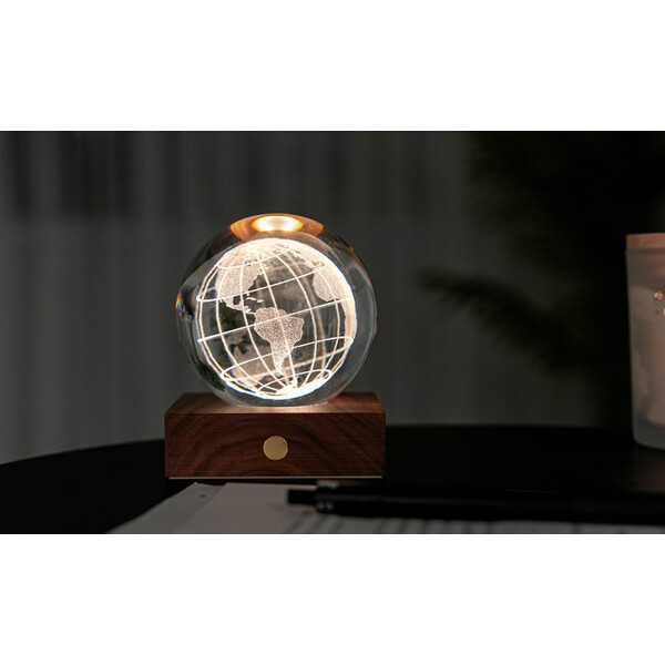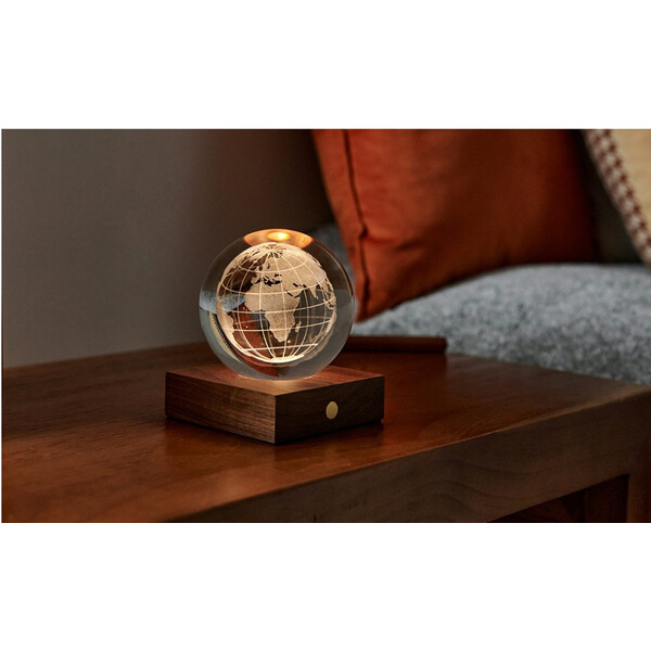 С височина 12 см кристалната топка е разположена върху основа от естествено орехово дърво, за да допълни интериорния ви дизайн. Можете да превключвате между три нива на интензивност на светлината, като докоснете медния бутон отпред на основата от масивна естествена дървесина. Кристалът също е полиран до блясък, който отразява светлината и създава зашеметяващ ефект във всяка стая. Основата от орех е снабдена с акумулаторна батерия, която може да поддържа пространството ви осветено със зашеметяваща светлина до 16 часа. USB-C портът в задната част позволява лесно зареждане.