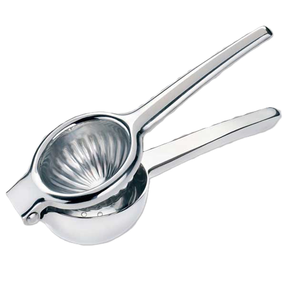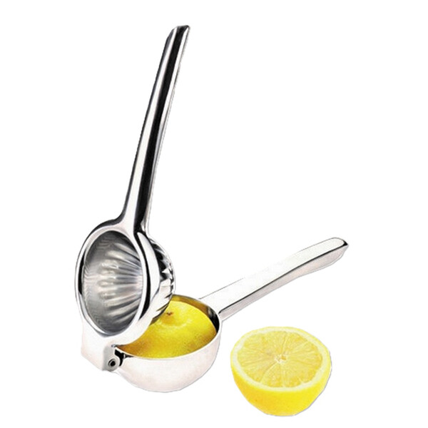 Сокоизстисквачка за лимон от неръждаема стомана с професионално качество. Инструмент за ежедневно готвене и незаменим за приготвяне на коктейли в бара. В: 21,5 см Ш: 7,8 см Д: 5 см Неръждаема стомана