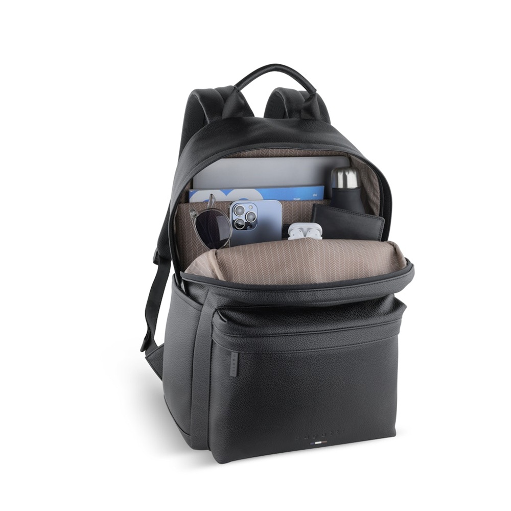 RICO - смарт аксесоарите се срещат бизнес аксесоарите. Тази колекция е стилна и модерна едновременно. Отлично изработената изкуствена кожа в черен цвят, придава на колекцията класически вид. МАТЕРИАЛ: PEBBLE PU РАЗМЕРИ: риблизително 32 x 18 x 44 см ТЕГЛО: приблизително 0,8 кг ХАРАКТЕРИСТИКИ: основно отделение с цип с подплатено отделение за лаптоп 15'', 2 джоба и отделение с цип, предно отделение с цип, 2 странични джоба, регулируеми подплатени презрамки, каишка за закрепване към количка