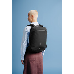 Bobby Air е тънка и аеродинамична раница, проектирана за безпроблемно ежедневно пътуване до работа. Изчистената ѝ, структурирана форма постига баланс между бизнес и ежедневен стил, изискана с меки ъгли и минимални извивки. Циповете с PU покритие и водоотблъскваща материя предпазват най-важното ви, докато джобът за бърз достъп и отделното отделение за 16-инчов лаптоп поддържат нещата организирани. Горните и страничните дръжки добавят гъвкави опции за носене. Изработена от издръжлив, лек рециклиран найлон, а подплатата е изработена с AWARE™, което гарантира използването на истинска рециклирана материя. 23% рециклирано съдържание. Регистриран дизайн®. Цвят - черен За лаптоп 16" Размер - 11/30/46 см Обем - 15 л Тегло - 0.585 кг