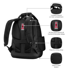 Раницата разполага с въздушна подплата на гърба, удобни презрамки, големи подсилени дръжки за лесно носене