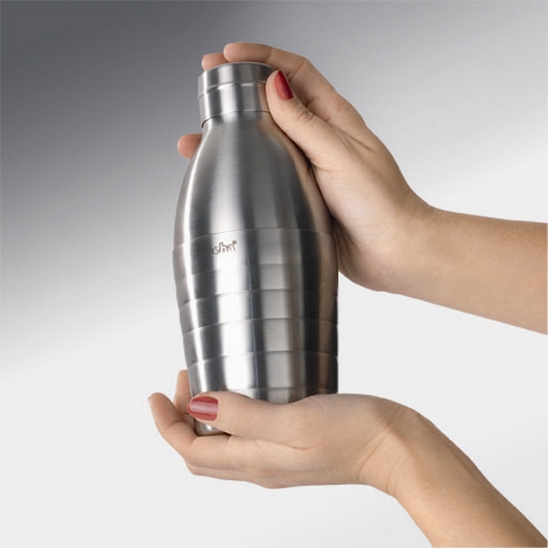 Шейкър от неръждаема стомана с ледотрошачка Режещият елемент с назъбено острие позволява трансформирането на този шейкър в ледотрошачка. В: 22,5 см, Ø 10 см