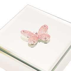Квадратна стъклена кутия за бижута с розова пеперуда от SOPHIA® - домът на изтънчеността в дамските подаръци. Зашеметяващ артикул, в който могат да се съхраняват всички ценни вещи. Уникалността на самотната пеперуда подчертава красотата на това изделие. Предлага се опакована в кафява затворена кутия. Марка: Sophia® Основен материал: Стъкло Основно покритие: Лъскаво Вторичен материал: Метал Вид опаковка: Кафява затворена кутия Тегло на продукта: 0.4800 кг Размери на продукта: В 61, Ш 123, Д 123 мм Размери на опаковката: В 146, Ш 86, Д 146 мм