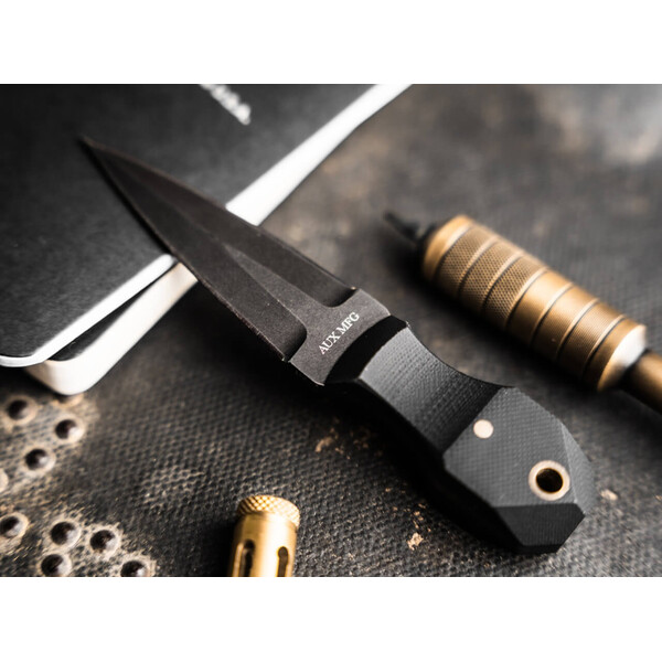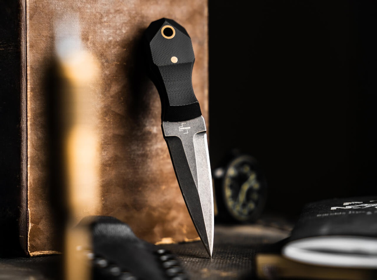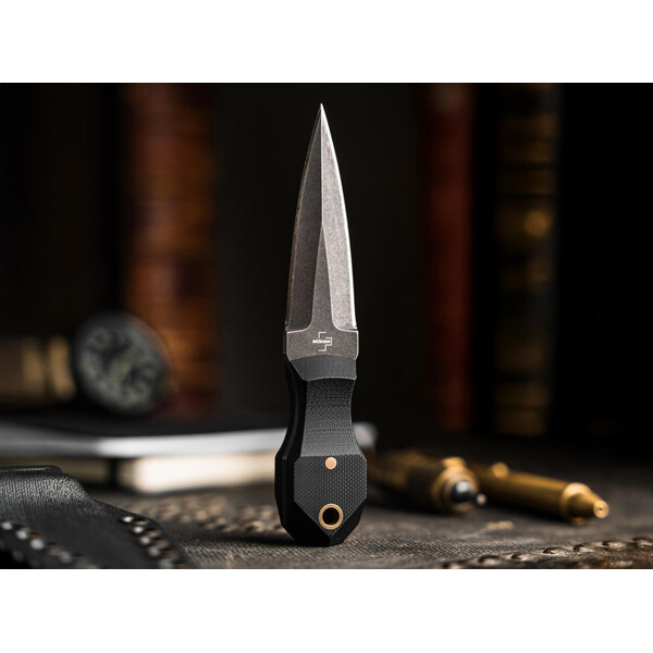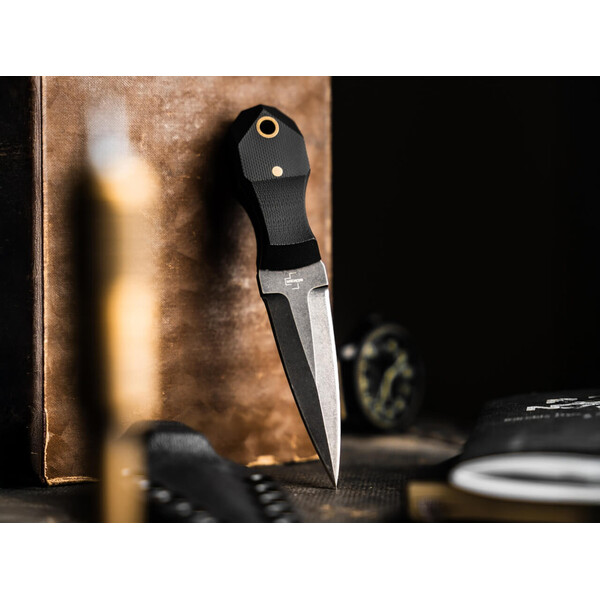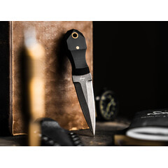 С Böker Plus Pocket Rocket, Майкъл Джарвис изстреля буквално ракета, изстрелвайки ножа си от базата си в Рино, Невада, директно в тактическата EDC вселена. Пътят на самоукия ножар започва скромно в ресторантьорската индустрия, като мияч на съдове, а по-късно като главен готвач, преди най-накрая да се издигне до най-високите ешелони на производството на ножове. Неговата компания, Auxiliary Manufacturing (AUX MFG), е известна преди всичко с ножове, които съчетават надеждност, прецизност и всеотдайност. Böker Plus Pocket Rocket се върти в същата тази орбита, служейки като лек нож за ежедневно носене и практичен резервен нож. Характеристиката, от която е направено едноименното му име, е особено очевидна в компактния му размер и симетричната форма на двуострото острие, изработено от висококачествена стомана D2. Динамичното, универсално и безкомпромисно изпълнение определя този нож с фиксирано острие с пълен танг, докато блестящите месингови нитове, единият от които може да се използва като отвор за връзка, добавят декоративни акценти. За тактически ситуации острието е с черно покритие „stonewash“, изработено от тъмен материал, безпроблемно допълващо изпъкналата дръжка G10. Благодарение на присъщата си гравитация, канията Kydex и съответстващата верижка с топчета за носене са винаги наблизо, за да можете да ги обхванете от ножа за врата. Галактически практично – ракетата за джоба ви!