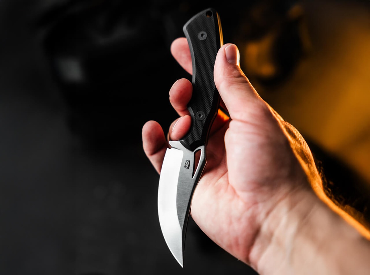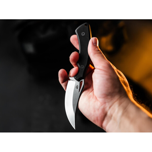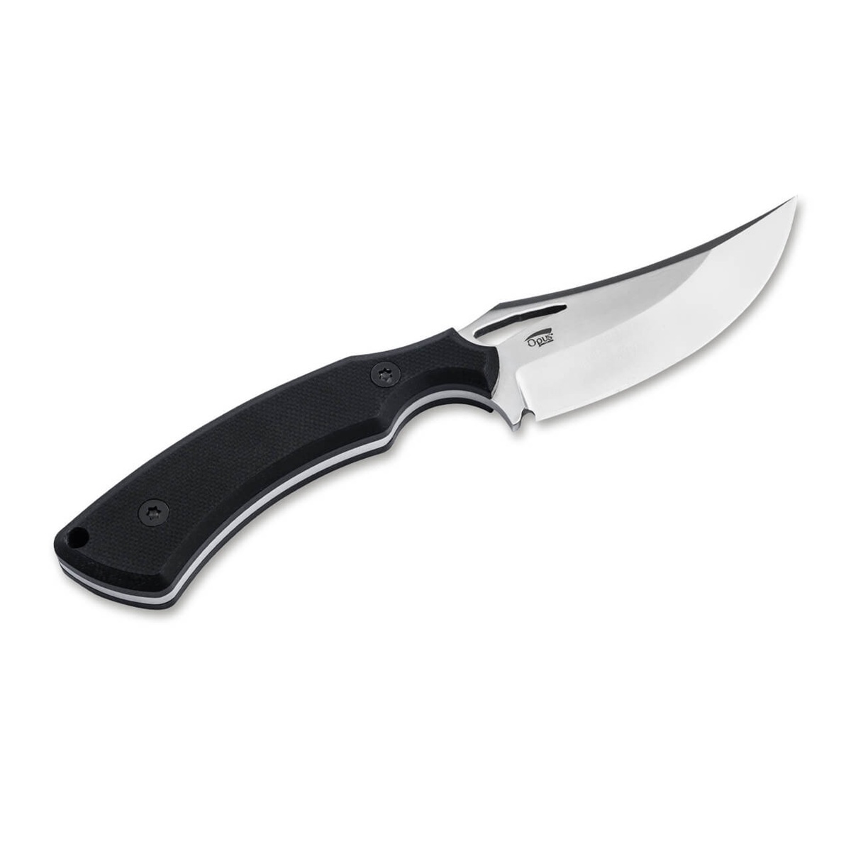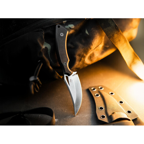 Шарл дьо Бюйър хваща бика за рогата и изпраща Boker Plus Tavros (на гръцки бик) на арената като енергичен EDC нож. Френският производител на ножове от Opus Knives, който живее в Канада, вижда страстта си по-скоро като изкуство и набляга особено на детайлите. С прогресивен дизайн, острие в персийски стил, изработено от стомана D2 със сатенено покритие и черни чирени на дръжката от G10, фиксираното острие вече нетърпеливо копае земята. Силуетът на острието напомня на рогата на бик, докато изрезът във формата на сълза, типичен за дизайнера, предпазва от уроки. Само взискателните задачи за рязане, като например рязане на картонени кутии или отваряне на опаковки, осигуряват символичния "червен плат" за Tavros и разгръщат пълния му потенциал. Ергономичните вдлъбнатини на дръжката, пълният танг и плътната опора за палеца гарантират удобна позиция на ръката, както и максимална стабилност и безопасност по време на употреба. В края на дръжката е предвиден и отвор за връзка. Но внимавайте: само най-смелите тореро могат да укротят горещия нрав на тавросите със своето безстрашие и перфектно прилягащата кания от кидекс с щипка за колан.
