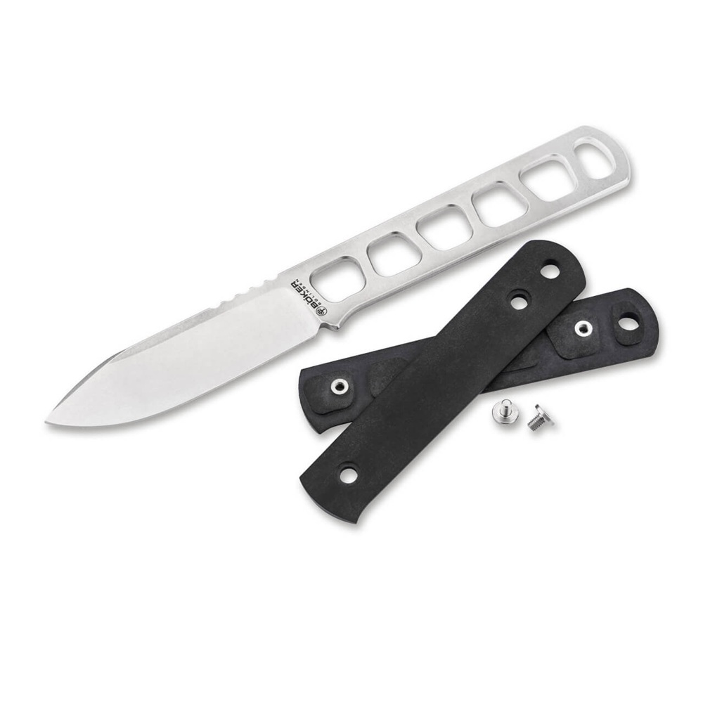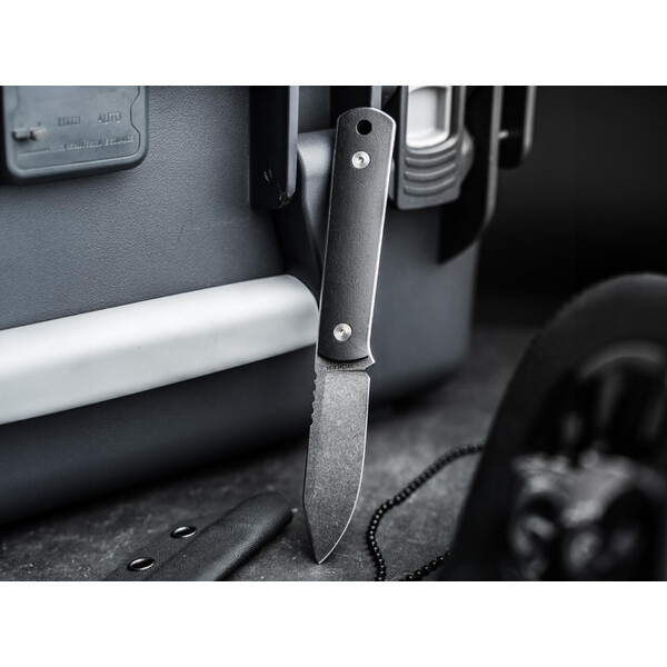 Дизайн на Lucas Burnley в най-чистата му форма - минималистичен, прецизен и готов за приключения. Burnley разширява своята известна серия Barlow BFF с Boker BFF Lightweight, леко като перце, скелетонизирано фиксирано острие, създадено за съвременни изследователи. Това издание е с подвижни чирени, изработени от устойчив Richlite - първокласен композит от смола и FSC-сертифицирана или рециклирана хартия. То предлага топло, естествено усещане с изключителна издръжливост и екологична отговорност. Острието MagnaCut (61-62 HRC), със стоунуош финиш, осигурява безкомпромисна производителност - твърдо, устойчиво на корозия и невероятно здраво. Елегантното му рикасо, прецизния джъмпинг и пъргавият баланс го правят едновременно визуално впечатляващ и функционално превъзходен. Посттактическата философия на Burnley за дизайн блести в отворите на дръжката, намаляващи теглото, придавайки на ножа отличителен, универсален характер. Независимо дали е нож за EDC, тактически или резервен нож, BFF Lightweight е винаги готов за следващата задача. Включва специално изработена кания Kydex с верижка от мъниста.