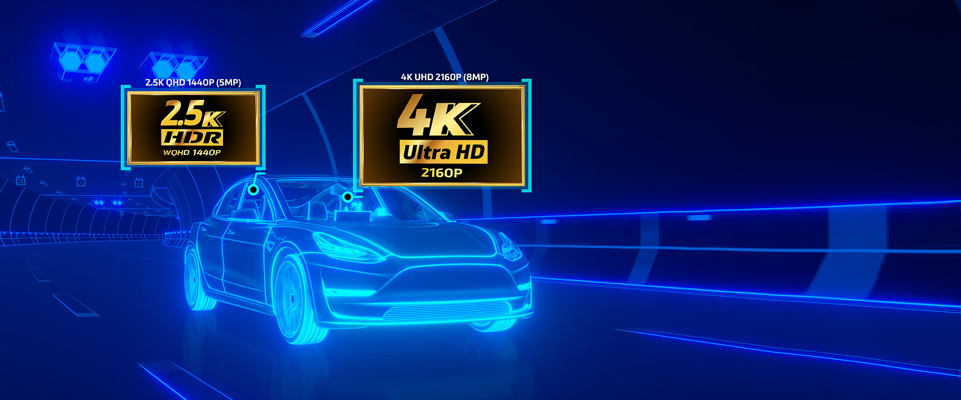 MiVue™ 955WD осигурява изключителна яснота чрез 4K 2160P (8MP) резолюция, която е четири пъти по-висока от Full HD, и 2.5K 1440P (5MP) задна камера за максимална защита.