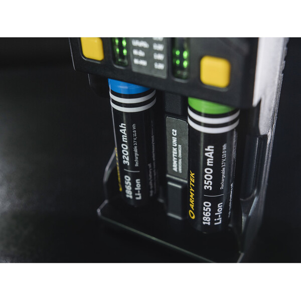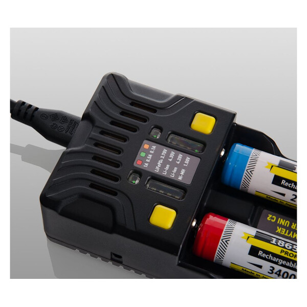 Универсалното зарядно устройство Armytek Uni C2 поддържа IMR, Li-Ion 4.2V, Li-Ion 4.35V, Ni-MH, Ni-Cd и Li-FePO4 батерии.